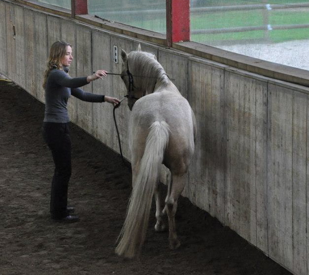 Daarom gaan we het paard eerst rechtrichten op de grond.
